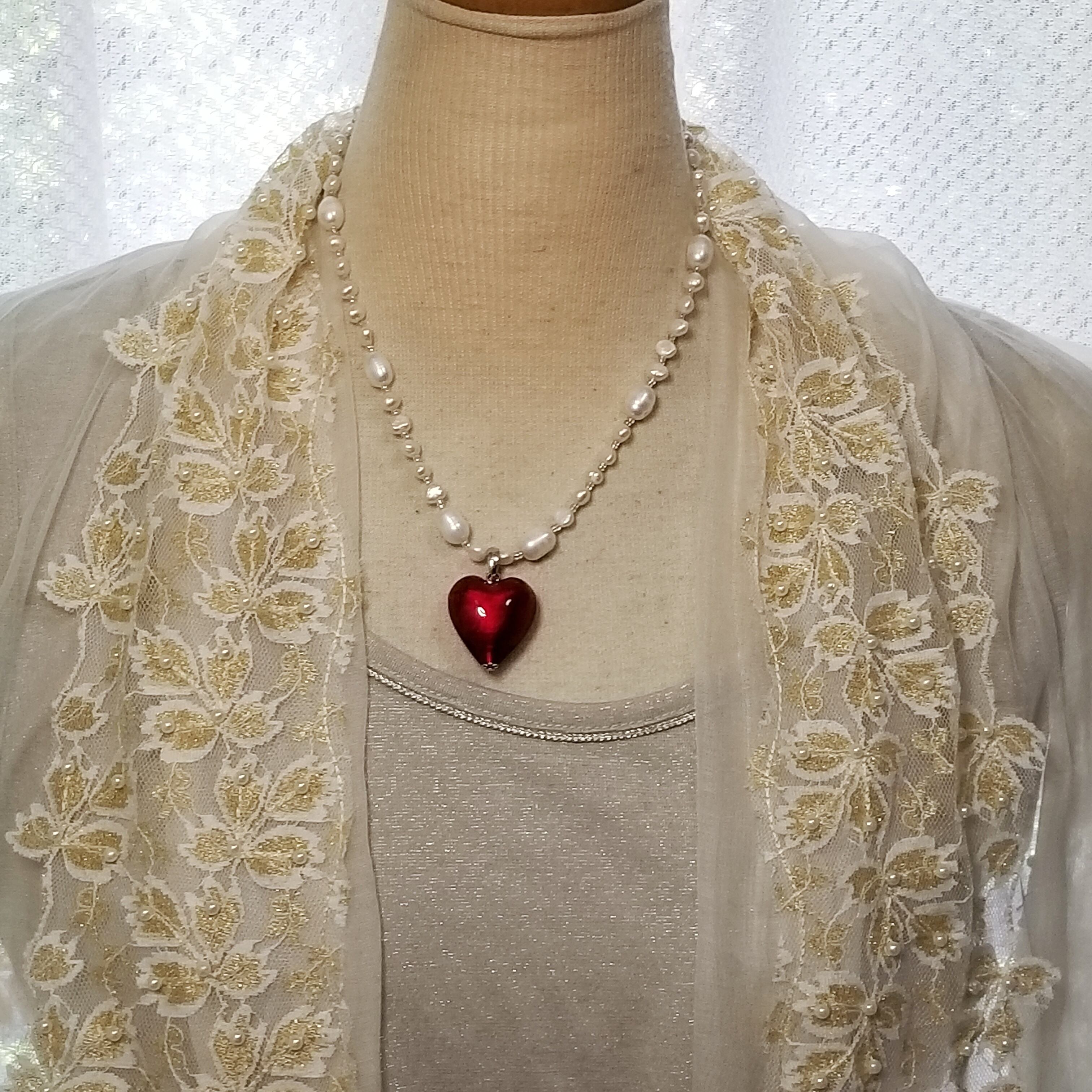 ベネチアの深みのある赤いハートが、清楚な装いにピッタリです。