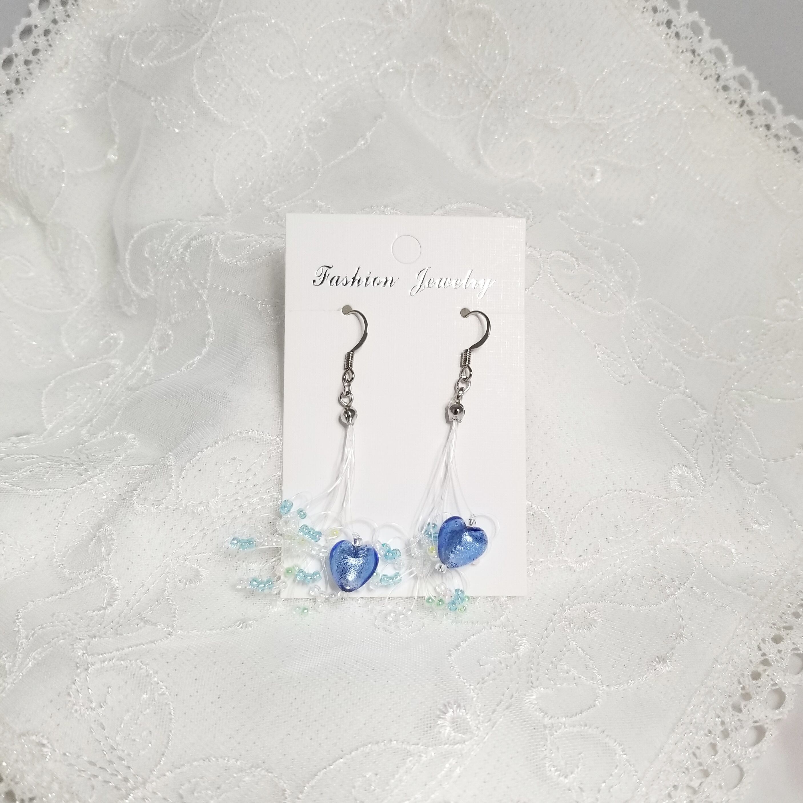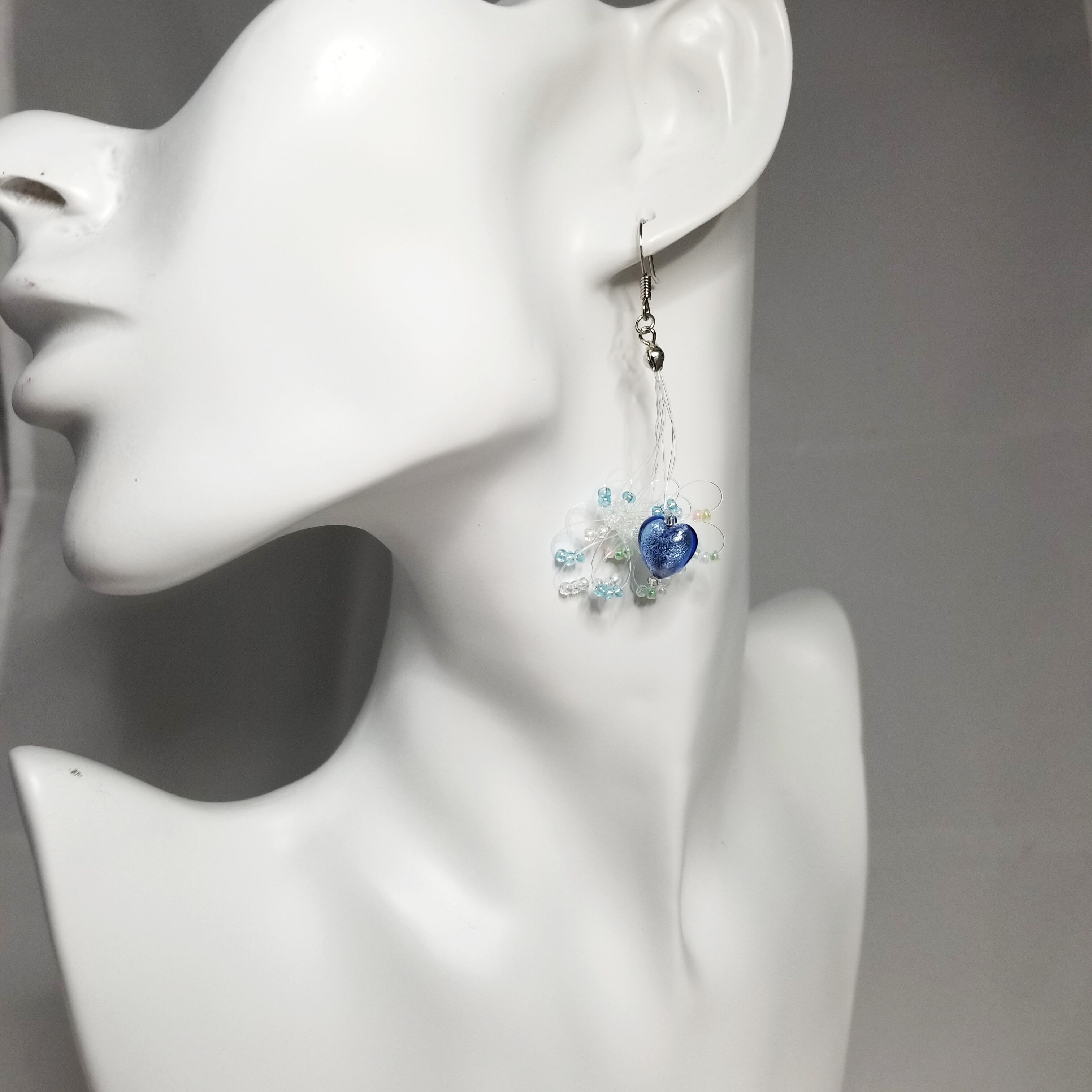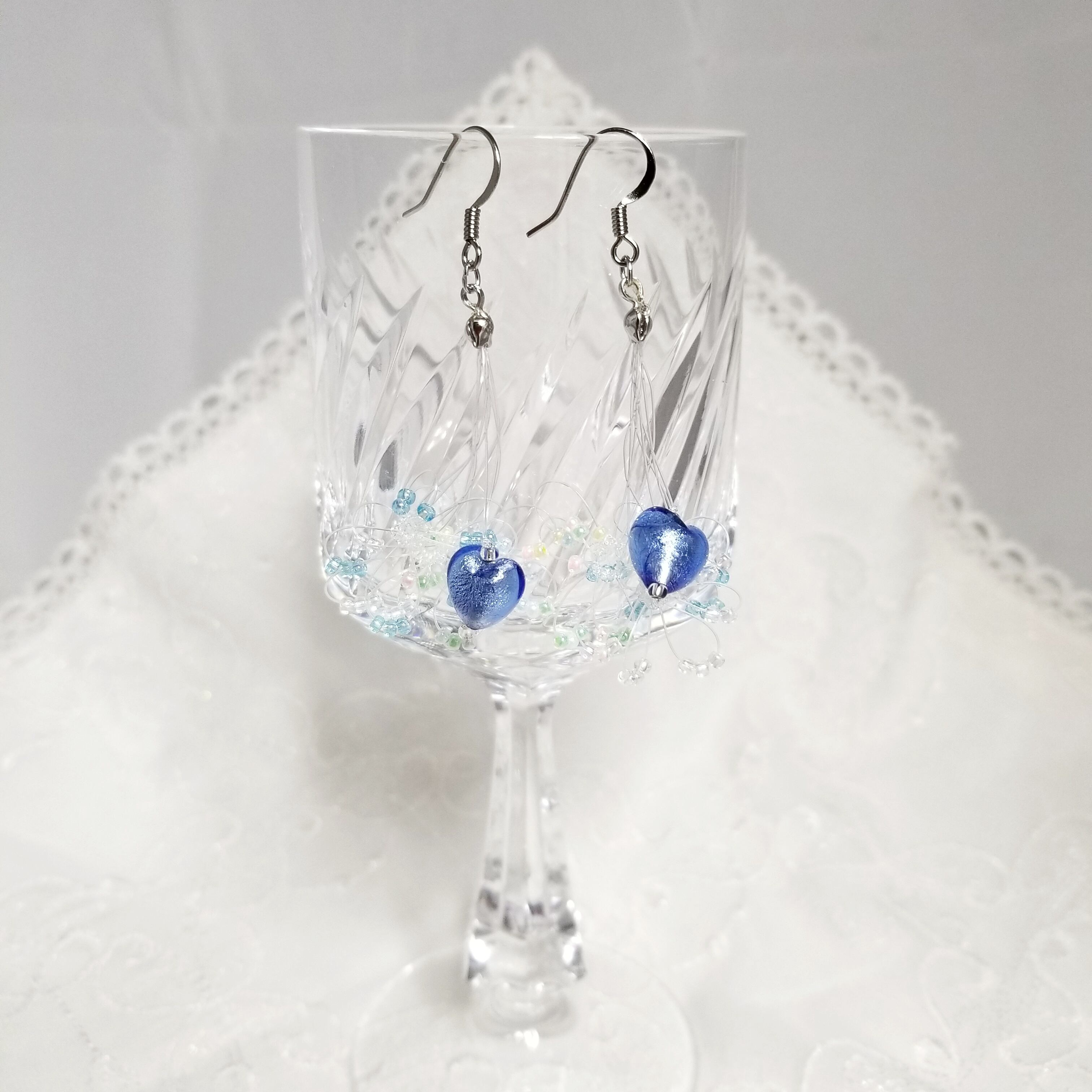 ハートのベネチアンビーズが、かすみそうの中で揺れるデザインです。